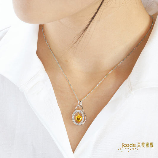 愛心鎖 - 黃金墜子 + 玫瑰金色鋼項鍊