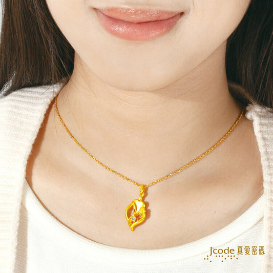 銀向杏福・小 - 黃金墜子 + 黃金項鍊