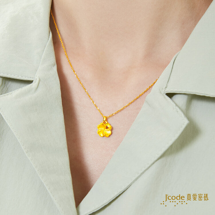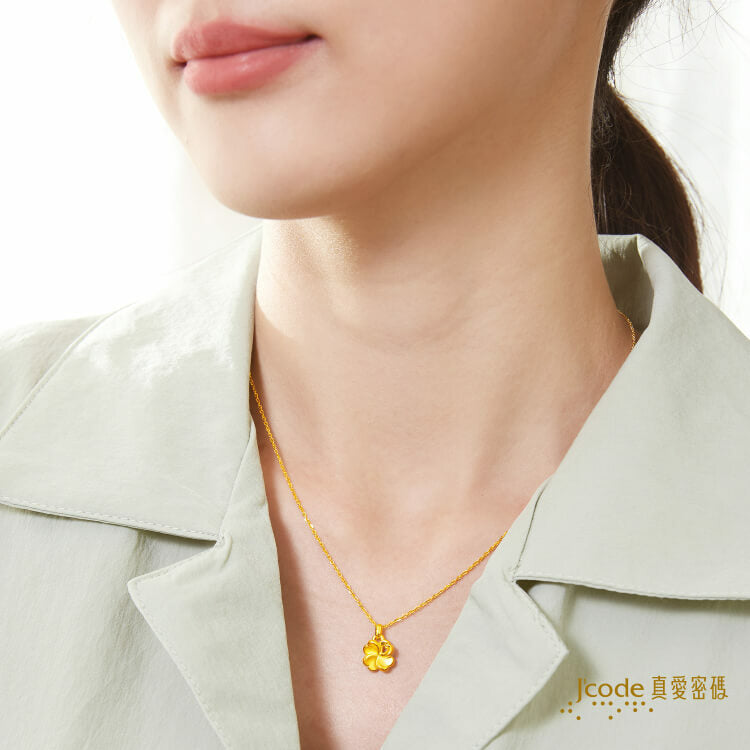 幸運圍繞・小 - 黃金墜子 + 玫瑰金色鋼項鍊