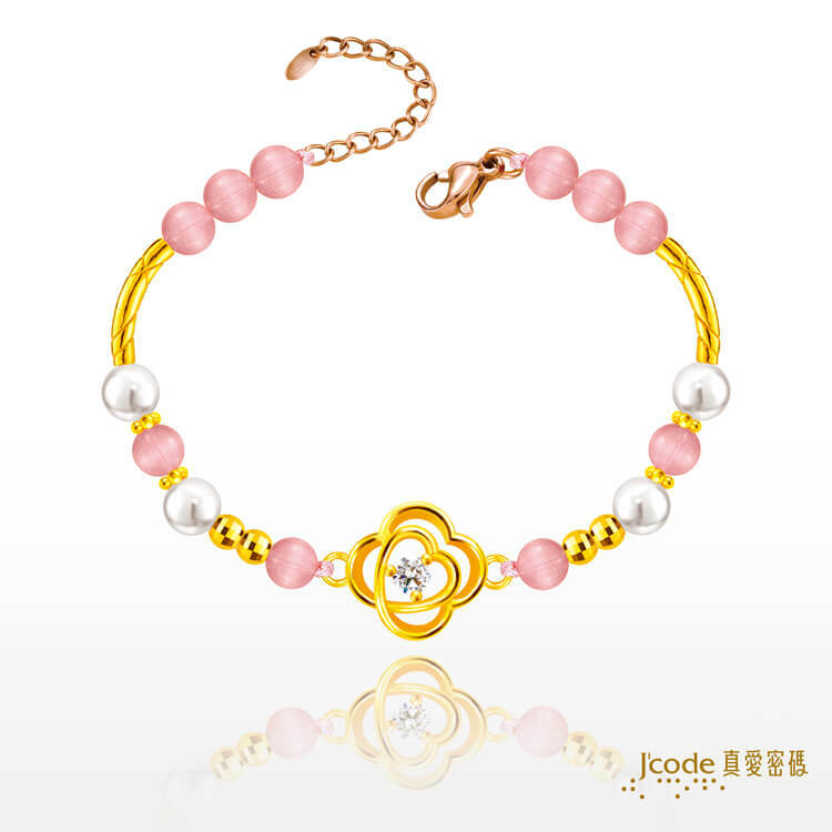 愛心四葉草 - 寶石珍珠金手鍊