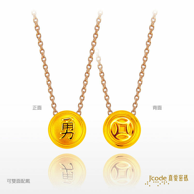 白沙屯 勇往直錢 - 黃金墜子 + 玫瑰金色鋼項鍊
